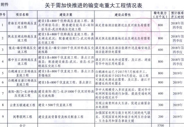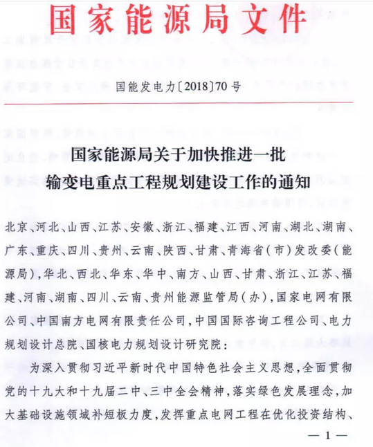 On September 7th, it was learned that the National Energy Administration issued the "Notice on Accelerating the Planning and Construction of a Batch of Key Projects for Power Transmission and Transformation". Guonengfa Electric Power [2018] No. 70, "Notice" pointed out that to supplement the infrastructure sector The strength of the board will play an important role in optimizing the investment structure, clean energy consumption, and precise power poverty alleviation, and accelerate the promotion of 9 items from Qinghai to Henan UHV DC, Baihetan to Jiangsu, Baihetan to Zhejiang UHV DC. The construction of key transmission and transformation projects will total 57 million kilowatts of transmission capacity (see the annex for the project).